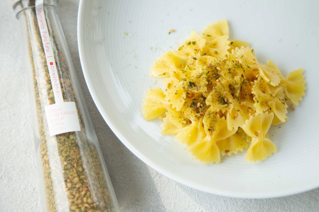 サラダのマンネリ化を解消!無添加のしまんとフルフルドレッシング。世界でも類を見ない、鰹節と宗田鰹節の粉をベースに、昆布・煎り胡麻・ぶぶあられに青のりや梅しそが原材料の、天然素材の、粉のドレッシング。